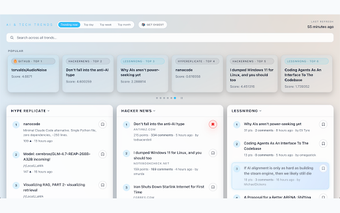 لوحة معلومات الذكاء الاصطناعي والاتجاهات هي إضافة مجانية لمتصفح Chrome تحول صفحة علامة التبويب الجديدة الخاصة بك إلى لوحة معلومات ديناميكية تركز على أحدث الاتجاهات في الذكاء الاصطناعي والتكنولوجيا ومشاريع المصدر المفتوح. تقوم هذه الأداة بتجميع البيانات من مصادر موثوقة متنوعة مثل Hacker News وGitHub وLessWrong، مما يوفر للمستخدمين رؤى في الوقت الفعلي حول الموضوعات الرائجة. يمكن للمستخدمين عرض العناصر الأكثر شعبية حسب اليوم أو الأسبوع أو الشهر، مما يضمن بقائهم على اطلاع بأحدث التطورات في هذه المجالات.